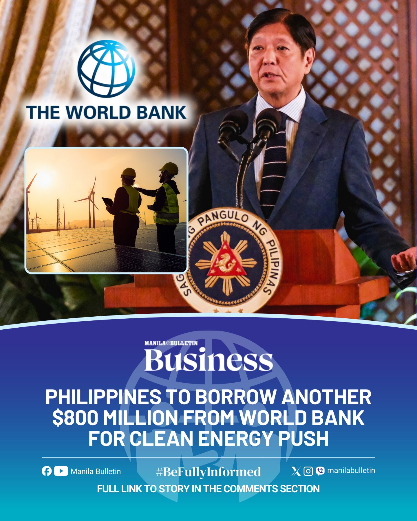フィリピンは来年、世界銀行から8億ドル(450億ペソ超)の融資を受け、クリーンエネルギーの利用拡大と水管理の強化を目指す新たな開発政策融資(DPL)を受ける予定です。