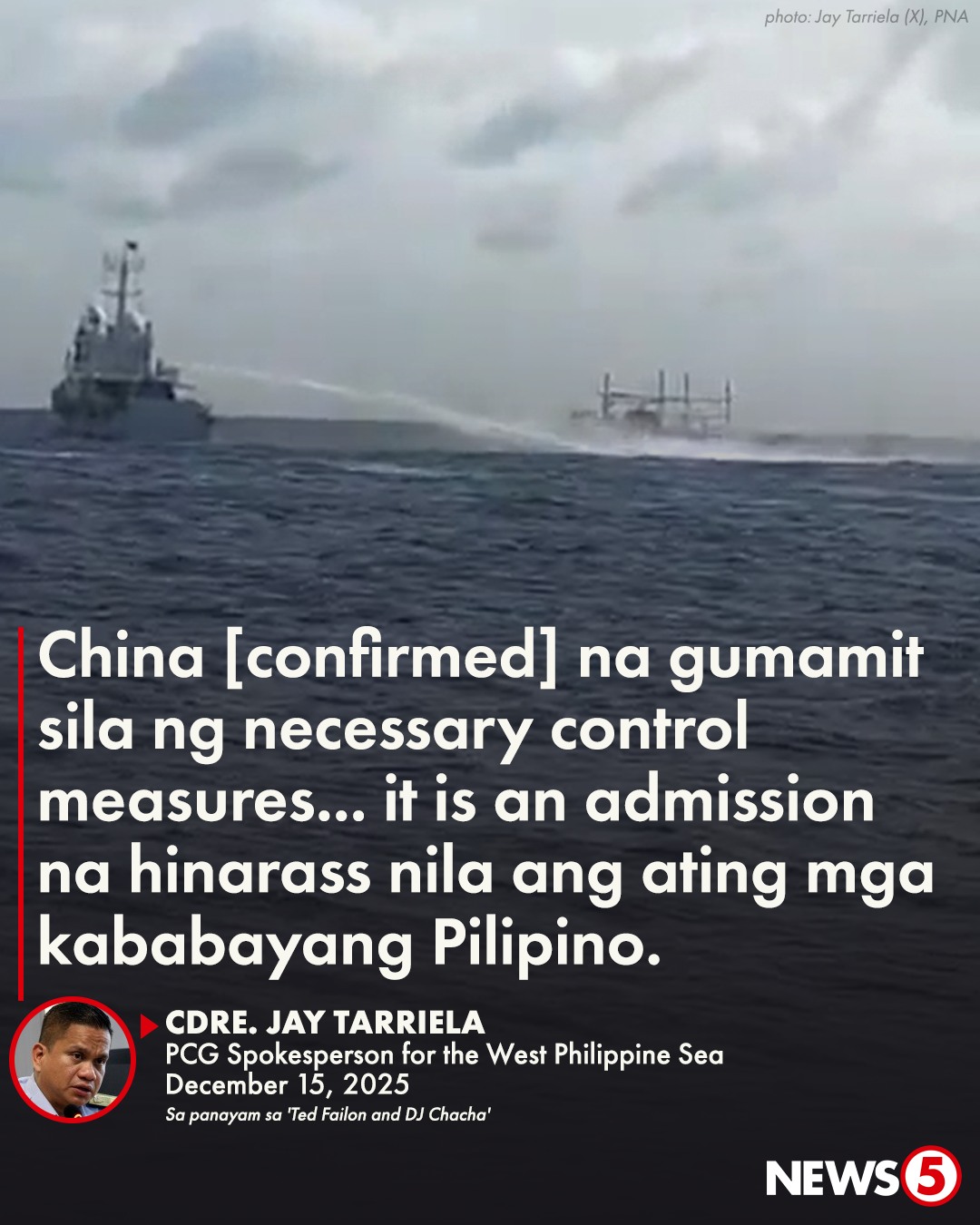 フィリピン沿岸警備隊(PCG)西フィリピン海担当報道官のジェイ・タリエラ提督は、中国自身が12月12日(土)にエスコダ礁でフィリピン漁民に対し「必要な管理措置」を講じたと主張した。