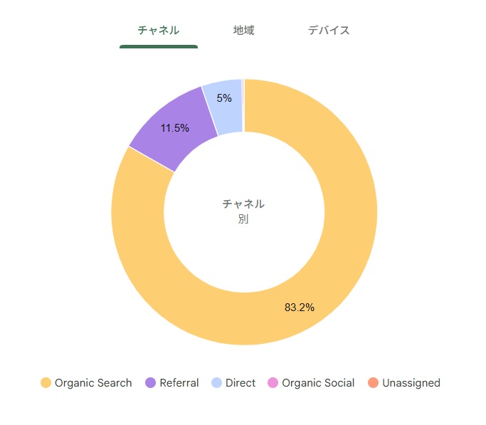 また、どこから来てもらっているかを調べてみると、現在は8割以上の方が検索から来訪しています。4か月前は、6割が検索からの来訪だったので、さらに検索からの来訪者の割合が増加しました。どのようなページに検索から来訪されているかというと、ページが多すぎてよくわかりません。セクシー系の映画タイトルからの来訪が上位を占めますが、かなり広く薄く、様々なワードで来訪してもらっているようです。
