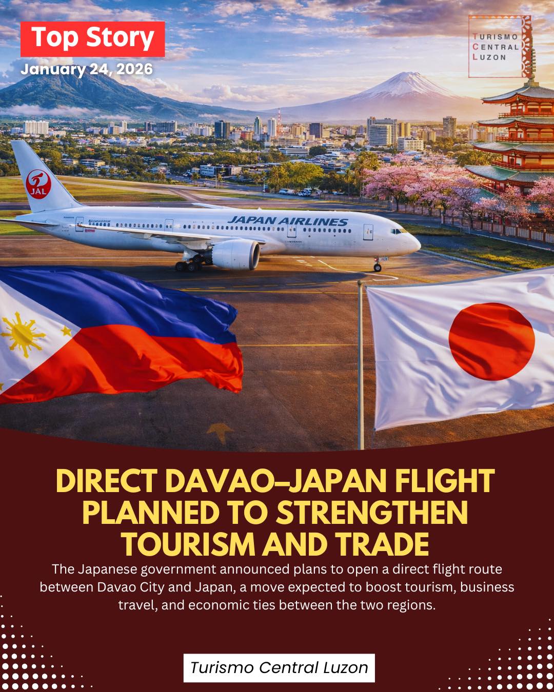 日本政府は、ダバオ市と日本を結ぶ直行便を開設する計画を発表しました。この計画は、両地域間の観光、ビジネス旅行、そして経済関係の活性化につながると期待されています。