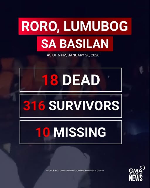 フィリピン沿岸警備隊(PCG)のロニー・ギル・ギャバン司令官によると、同船には乗組員を含めて344人が乗船していました。このうち、316人が救助されました。また、行方不明の10人の中に同船の乗組員も含まれていると付け加えました。