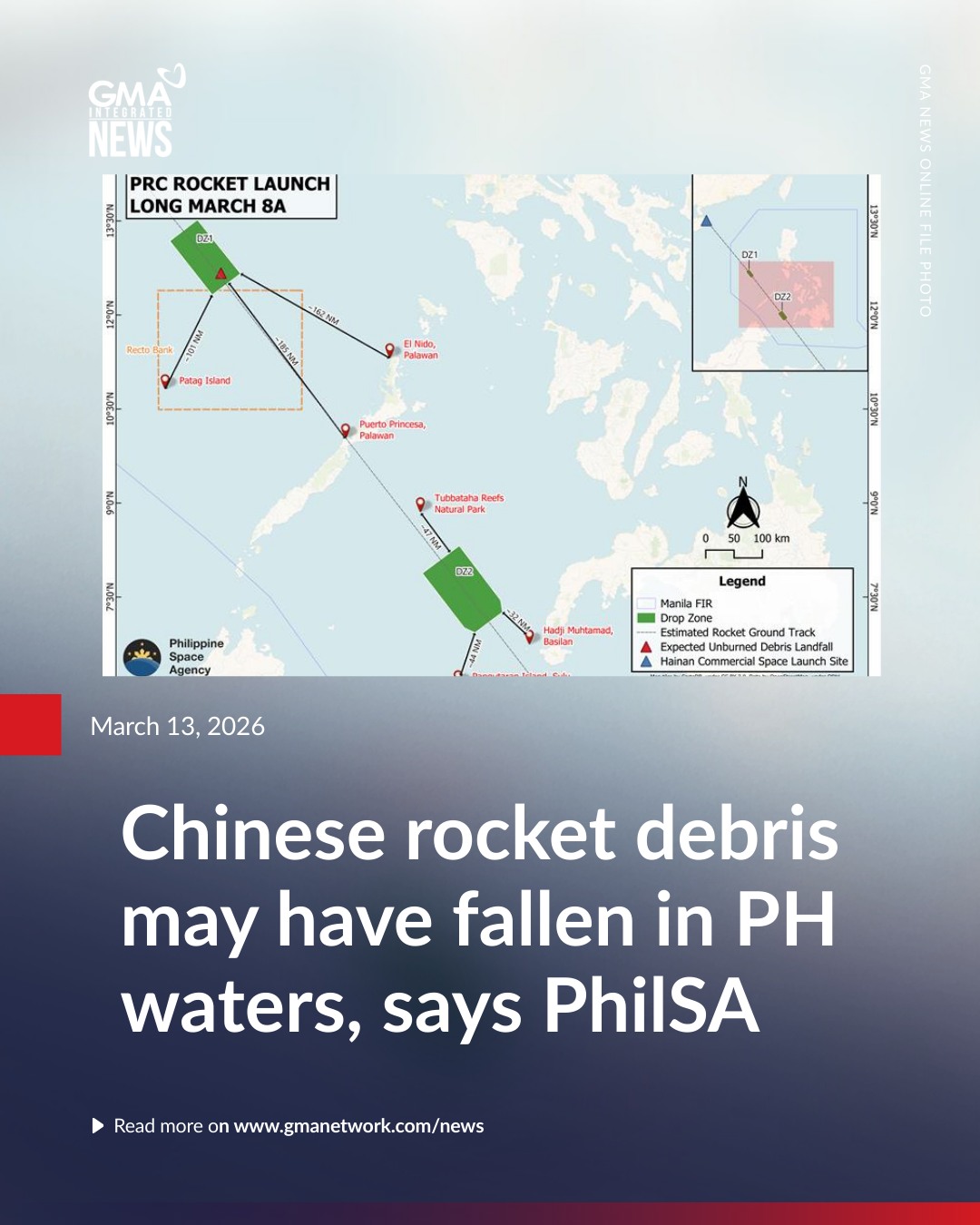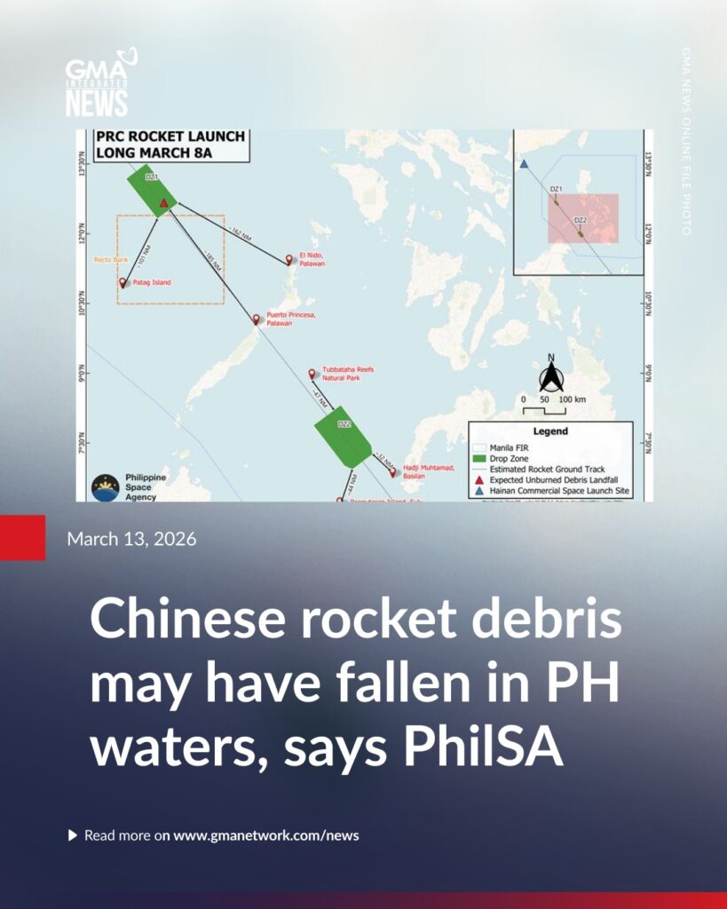 フィリピン宇宙庁(PhilSA)は金曜日、中国の長征8A型ロケットの打ち上げによる破片が、フィリピンの群島領海および排他的経済水域(EEZ)に落下した可能性があると警告した。