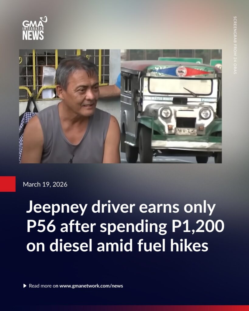 燃料価格高騰の中、ジープニー運転手はディーゼル燃料に1,200ペソを費やしたが、手取りはわずか56ペソだった。