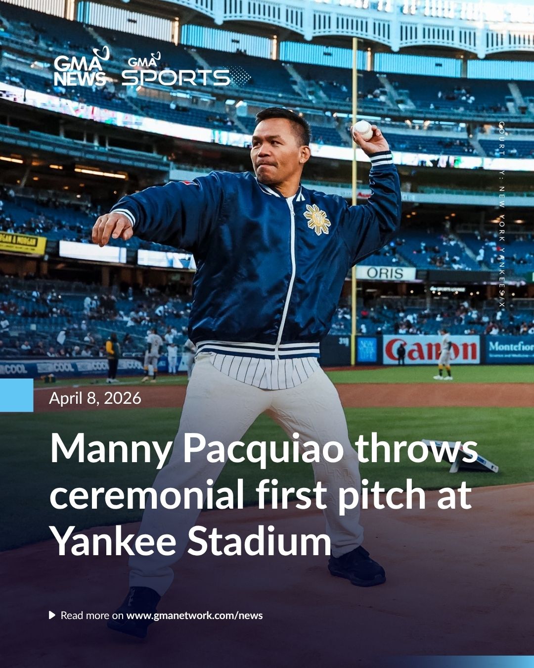 ボクシング殿堂入りを果たしたマニー・パッキャオが、水曜日(フィリピン時間)にヤンキー・スタジアムを訪れ、ニューヨーク・ヤンキース対アスレチックス戦の始球式を務めた。