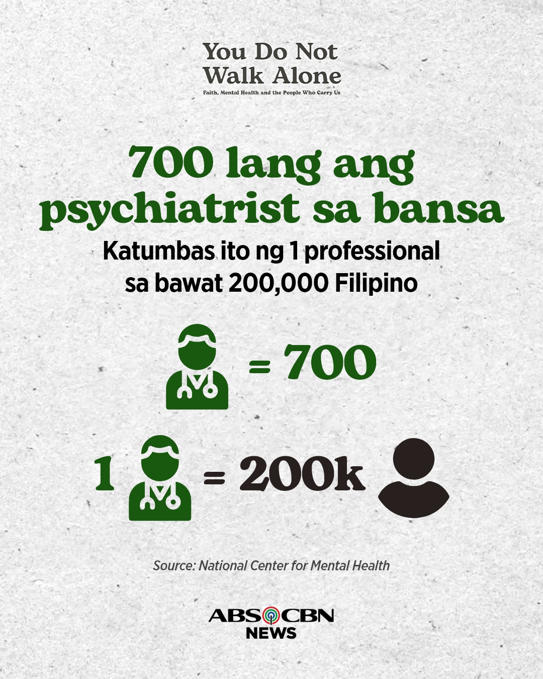 国立精神保健センターによると、フィリピン人20万人に対し精神科医はわずか1人しかいないと推定されている。